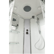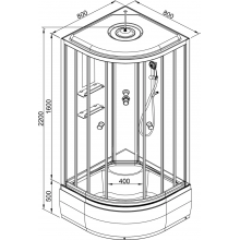Стильная душевая кабина с внутренней сборкой AvaCan EM 4580 сочетает в себе высокую функциональность, практичность и надежность. Для изготовления применяют безопасное закаленное стекло толщиной 5 мм, надежно фиксируемое алюминиевым профилем. Цвет профиля хром. В комплекте зеркало, донный клапан (клик-клак), переключатель режимов, смеситель, тропический (верхний) душ, полочки, душевой гарнитур.