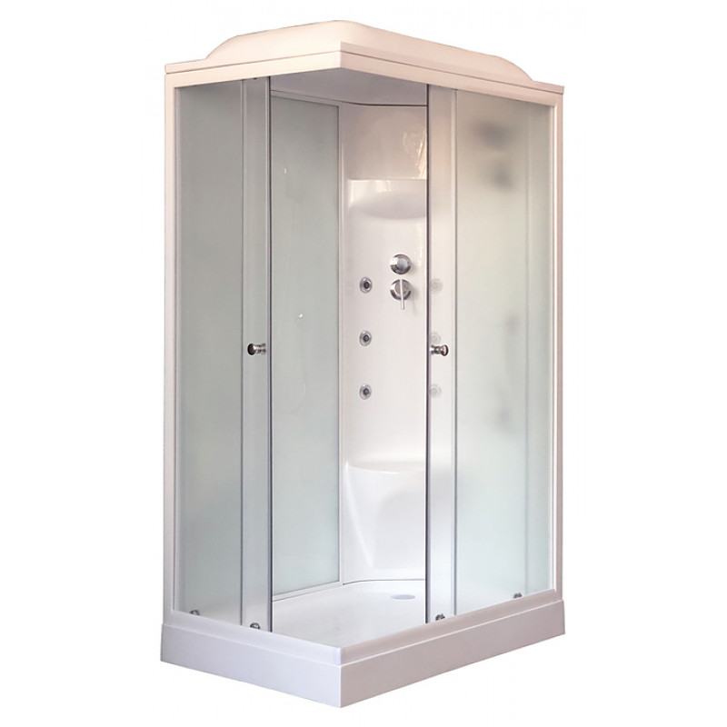 Душевая кабина RB 8120HP7-WC за счет своего белого цвета прекрасно впишется в любой интерьер ванной комнаты. Определяя место для модели в комнате, обратите внимание, что кабина правосторонняя. Матовые стеклянные двери для душа придадут великолепный вид и практичность, а также помогут сохранять приватную обстановку. Акриловый поддон с антискользящим покрытием имеет оптимальную для входа высоту. Движение дверей по направляющим обеспечивают подшипниковые ролики. Для приема душа предусмотрены две лейки (верхняя и ручная), полочка, где можно расставить средства гигиены, а также встроенное сиденье, которое поможет отдохнуть или с удобством провести необходимые гигиенические процедуры. Привычные водные процедуры с верхним и ручным душем разбавит гидромассаж в кабине.