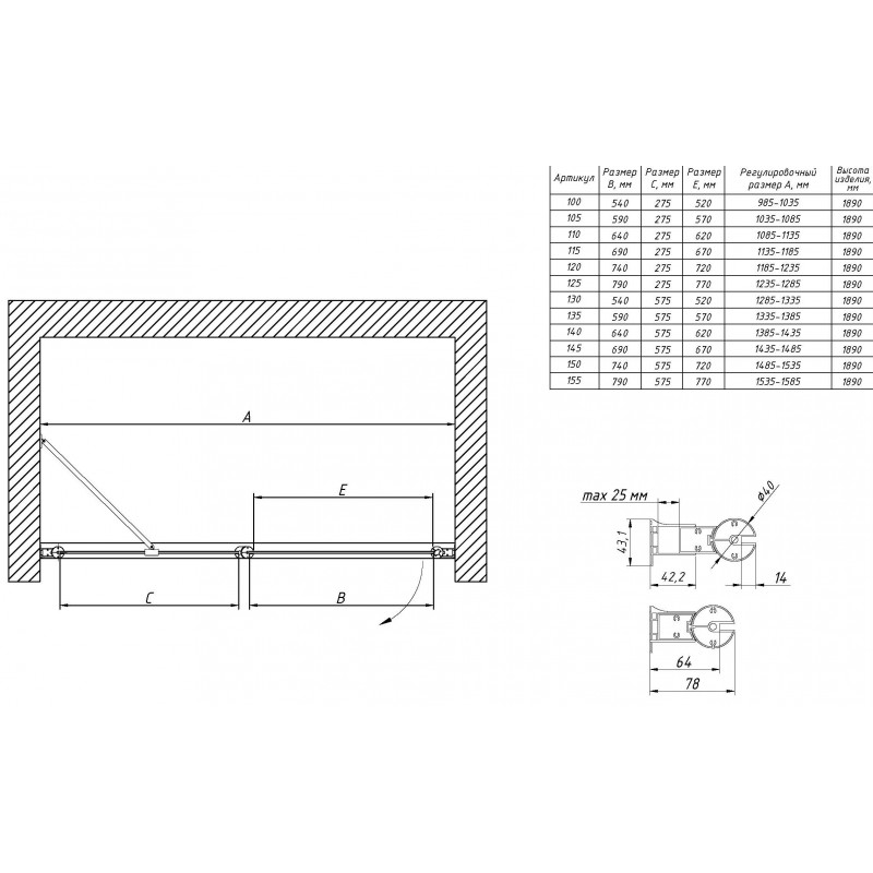 Душевая дверь в нишу Vegas EP-F-1 115 08 10 L глянцевый хром/сатин