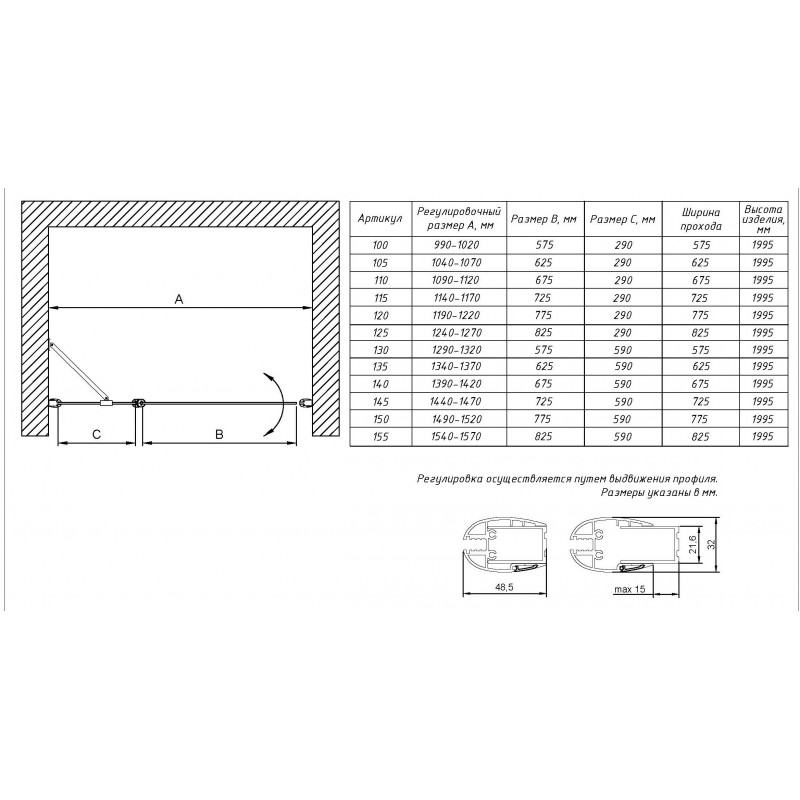 | Открывание двери: | с распашными дверями |