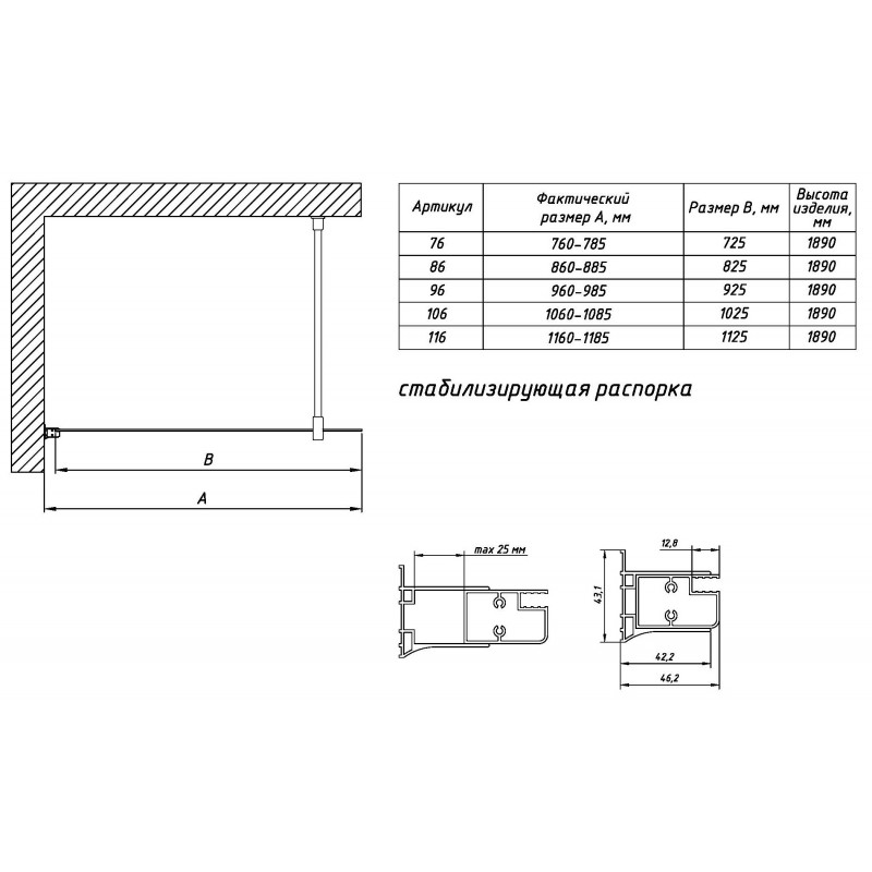 Душевая перегородка Vegas EAF 116 05 01 станет органичной частью интерьера в стиле хай-тек. Конструкция из прозрачного стекла, вставленного в алюминиевый профиль, отличается легкостью и мобильностью. Она герметична за счет использования силиконового магнитного уплотнителя. Ширина ограждения варьируется в пределах 116–118,5 см, что позволяет производить монтаж без предварительной подготовки стен. Для обеспечения устойчивости оборудования применяют входящую в комплект распорку длиной 120 мм.