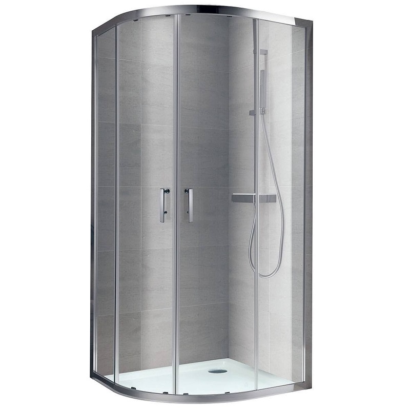 Душевой уголок состоит из 2-х неподвижных стеклянных частей и изогнутых раздвижных частей. Двойные ролики в верхней и нижней части стекла упрощают движение дверей и обеспечивает плавность хода. Нижние ролики с механизмом расфиксации обеспечивают уход за кабиной, а хромированные ручки придают кабине выразительность. Дополнительно комплектуется поддонами ROUND.