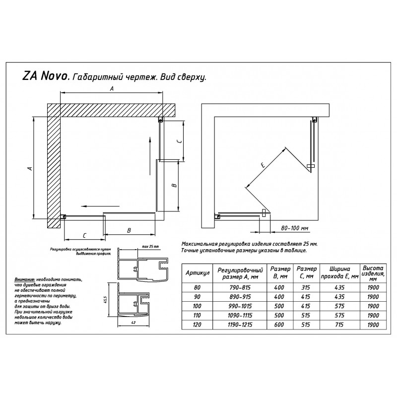Душевой уголок Vegas Glass ZA NOVO 80 07 01 матовый хром/прозрачное