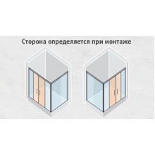 Душевой уголок, прямоугольный, с двухстворчатой раздвижной дверью, двумя неподвижными сегментами и боковой перегородкой, без поддона.