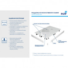 Душевые поддоны из искусственного камня, обладают высокой прочностью и долговечностью. Материал поддона позволяет резку по индивидуальным размерам. Поверхность поддонов рельефная, антискользящая. Нагрузка на поддон до 300 кг.