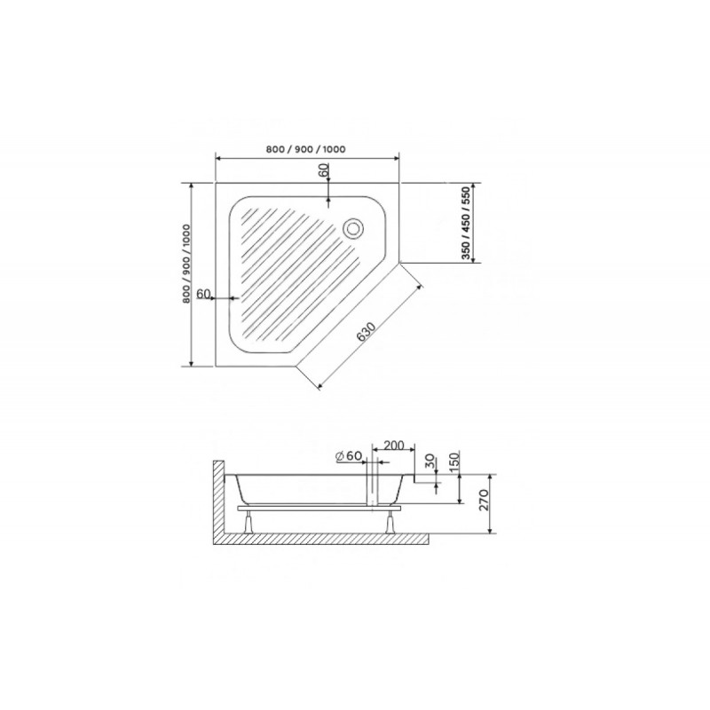Акриловый поддон для душа Усиленный плитой ДСП Стеллаж с регулируемыми ножками Борт высота 3 см Рельефное дно поддона Глубина 15 см Диаметр сифона 60 мм Выдерживают нагрузку 130 кг Без сифона Без экранов