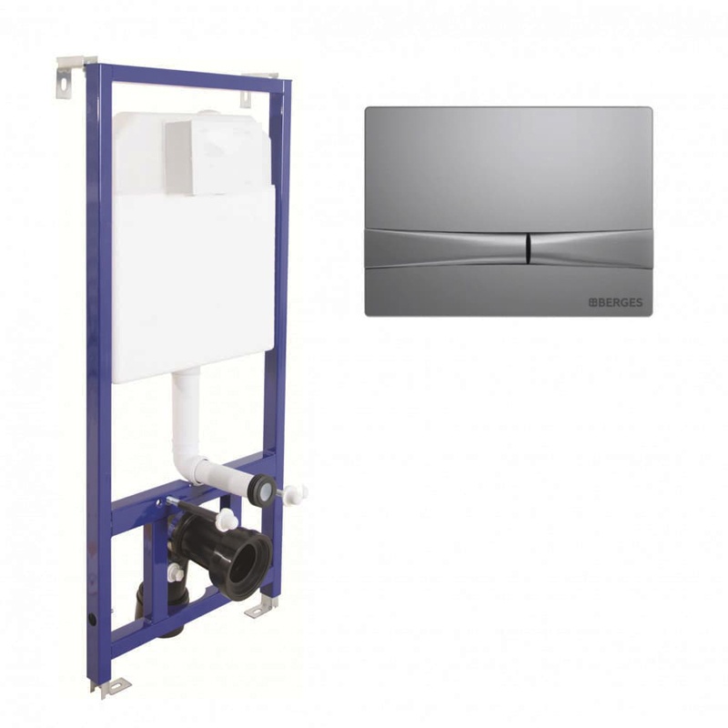 Инсталляция Berges Wasserhaus NOVUM F2, для подвесного унитаза в комплекте с кнопкой матовый хром, 040252