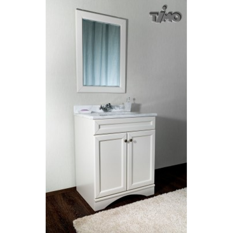 Цвет: Венге/Белый. Основным материалом мебели для ванных комнат "TIMO" применяется натуральная, твердая древесина. Экологическая чистота, уникальность фактуры, эстетичность материала. Характеристика: 1. Две двери. 2. Дверные петли с плавным закрытием. 3. Зеркало на деревянной основе. 4. Материал - массив дуба. 5. Мраморная столешница. Производитель - Timo (Финляндия). Гарантия 3 года. Не боится воды. Размеры (мм.) Длина Ширина Высота Тумба 742 548 895 Керамический умывальник & столешница 762 558 215 Зеркало 692 24 914