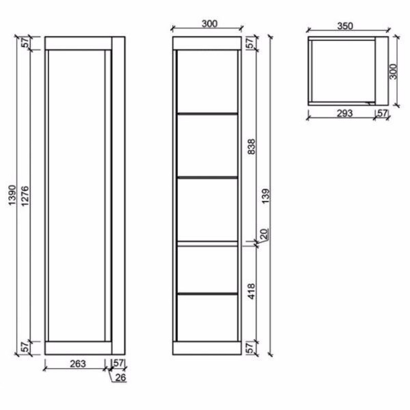 Пенал оборудован хромированными рейлингами для размещения полотенец и иных аксессуаров. Дверца открывается нажатием.