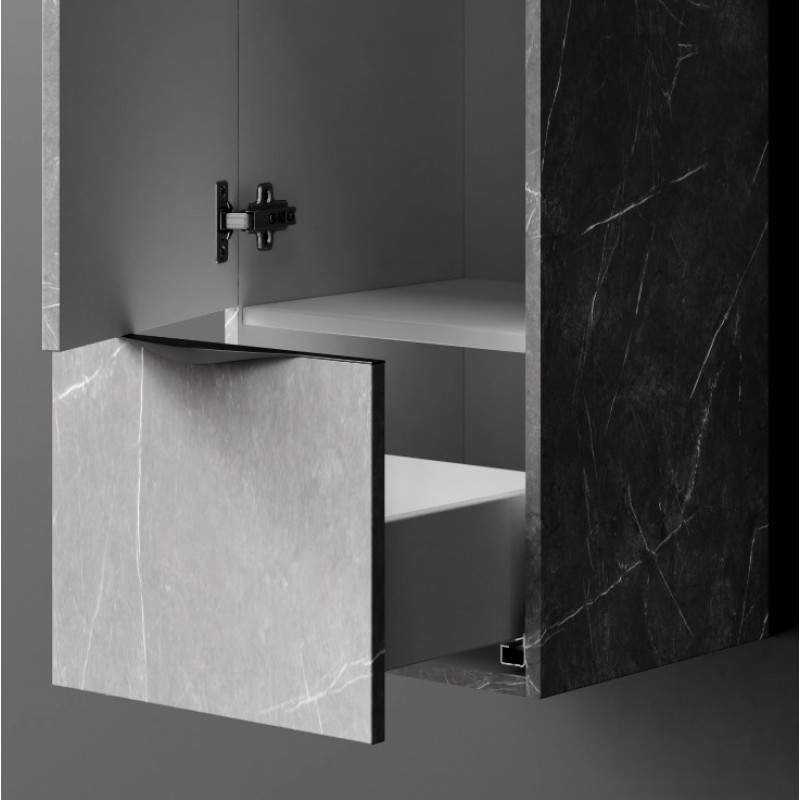 Шкаф-пенал Vod-ok Марко 35 L дверь и ящик, ручки черные, мрамор серый