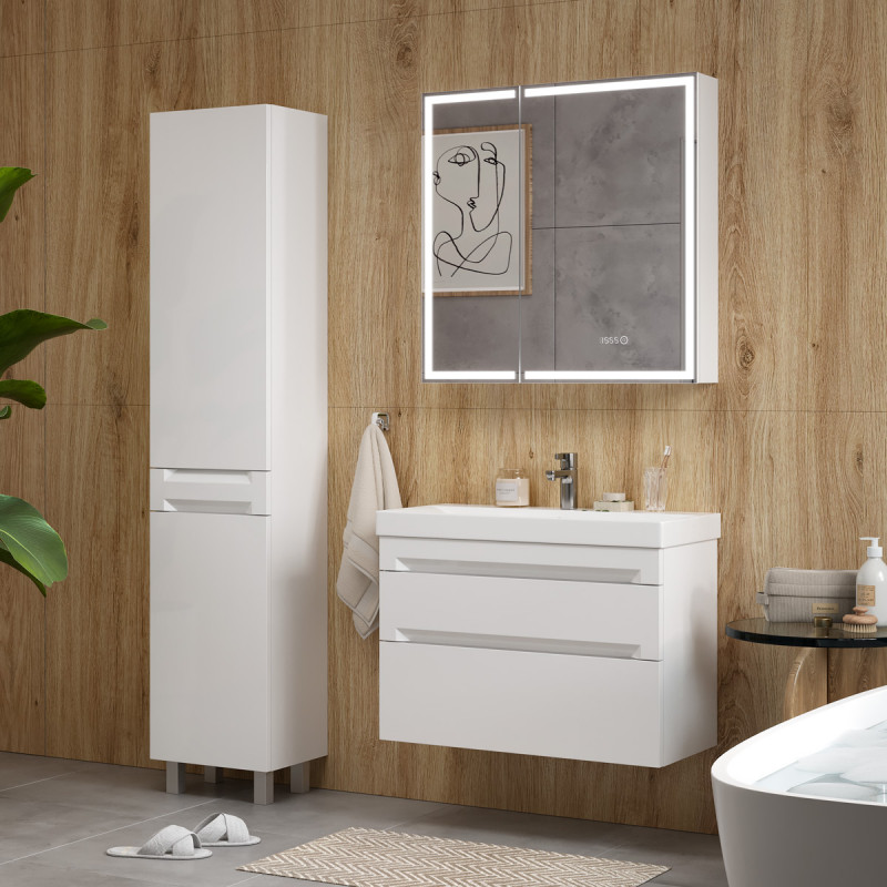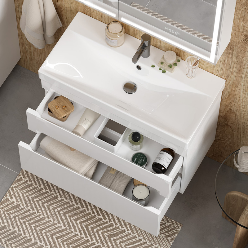 Подвесная тумба Equil Corner tpCRNR80.2Y-06 с двумя выдвижными ящиками с системой плавного закрывания. Фасады тумбы изготовлены из МДФ и покрыты глянцевой эмалью. Ящики открываются при помощи интегрированных ручек.