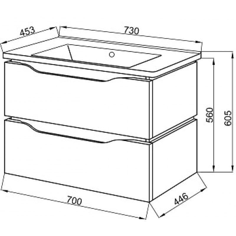 Тумба для ванных комнат серии Сицилия, отличительной чертой которой являются специальные вставки темно-коричневого цвета (дуб венге) по бокам и на фасаде тумбы, двойные боковины, а также отсутствие классических ручек, укомплектована керамической раковиной "КАНТЭ" шириной 70 см. Особенностью этого умывальника является бортик по всему периметру, тонкий и стильный дизайн с глубокой чашей. Такая конструкция раковины выглядит очень стильно и препятствует разбрызгиванию воды и придает большую практичность при использовании. Плавный ход Использование высококачественных направляющих скрытого монтажа с плавным закрытием торговой марки Blum (Австрия). Нижний выдвижной ящик укомплектован продольными рейлингами. Корпус изделия ДСП Корпус тумбы выполнен из ДСП торговой марки Swisspan (Швейцария) толщиной 32 мм. Фасад изделия МДФ Фасад - МДФ торговой марки Kronospan (Беларусь) толщиной 16 мм. Торцы мебели защищены кромкой ABC. Покраска и лакирование Покрытие поверхностей мебели проходит в несколько этапов: сначала грунтовочные слои, потом слой двухкомпонентной белой высокоглянцевой эмали Sayerlack (Италия). Надежность Тумба собирается на крепежные элементы торговой марки HÄFELE (Германия), что обеспечивает повышенную надежность конструкции. Регулируемые подвесы Вся конструкция мебельного изделия установлена на 4 регулируемые ножки из хромированной стали. Влагостойкость Благодаря технологиям производства и высоким стандартам качества мебель Cerutti SPA устойчива к влаге и предназначена для использования в ванной комнате.