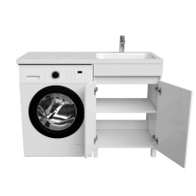 Тумба Optima Home – это удобное решение, чтобы организовать одновременно и зону умывания, и расположить стиральную машину. Модель подходит для установки стиральных машин с фронтальной загрузкой, слева от тумбы. В коллекции Optima Home также представлен вариант c расположением машинки справа от тумбы (арт. OPH11LDi95K). За ассиметричными распашными дверками расположена вместительная зона хранения для бытовой химии и принадлежностей для стирки. Высокие ножки позволяют скрыть коммуникации под тумбой и защитить ее от повреждения при затоплении. Тумбу дополняет умывальник (арт. 480110Ri28) с длинным крылом и большой, глубокой чашей.