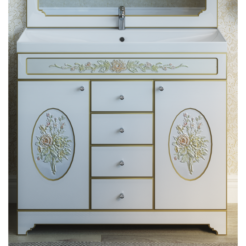 Коллекция люксовой мебели Milano достойна роскошных королевских интерьеров. Эффектная резьба на фасадах, выполненная с ювелирной точностью и вниманием к деталям, изображает нежные букеты цветов в пастельных оттенках. Заключенные в овальные рамы, они выделяются на фоне гладких белоснежных поверхностей. Эта мебель требует оформления ванной комнаты в классических стилях и приглушенных цветах.
