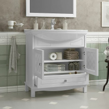 Элегантные и лаконичные формы изделия идеально впишутся в любой интерьер в стиле прованс. Фасадные элементы украшены оригинальными ромбовидными узорами стеклянных витражей. Данная модель позволит эргономично разместить необходимые принадлежности. Тумба оснащена механизмами плавного закрывания Hettich (Германия).