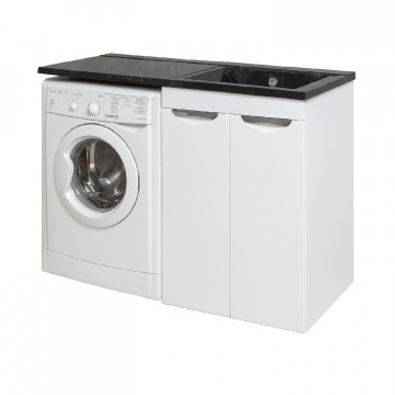 Тумба под умывальник напольная с двумя распашными фасадами и одной внутренней полкой. Петли со встроенным доводчиком, ручки врезные - 2шт. Устанавливается на 4-е пластиковые опоры, скрытые за нижней съемной фальшь-панелью. Комплект предусматривает установку стиральной машины размером 60х45х85см под крылом умывальника слева от тумбы.