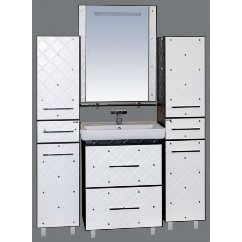 Украшенные крупными кристаллами Swarovski комплекты напольной мебели Гранд LUXE 60, 70, 80 представлены изделиями с белой кожей на фасадах, и черной – на элементах корпуса.