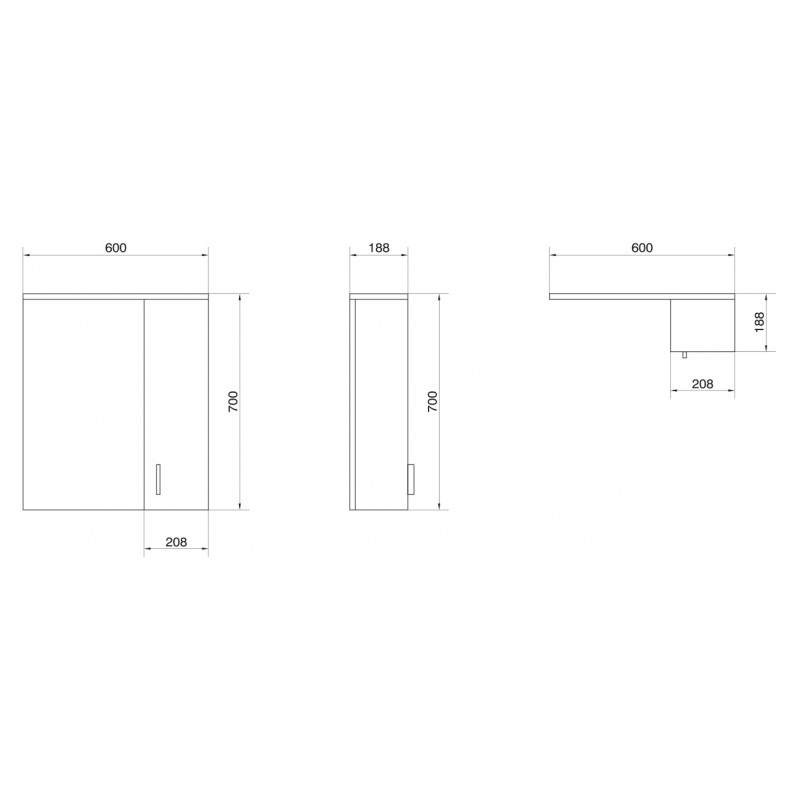 Размеры (ШхГхВ): 60х18,8х70 см.