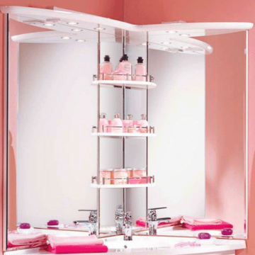 Зеркало "ЛАС-ВЕГАС" угловое (левое или правое). Гламурная модель «ЛАС-ВЕГАС» – одна из самых интересных среди моделей с гнутыми фасадами. Роскошное зеркало, рейлинги-ограничители на открытых полках - все это вместе представляет современную модель, разработанную в соответствии с последними дизайнерскими тенденциями.