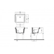 Раковина хозяйственная керамическая HATRIA Y1VD, без отверстий для смесителя, размер 60х50 см, цвет белый. Для установки на 2 ножки арт. Y1VC. Сифон для раковины приобретается отдельно.
