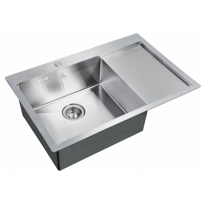 Чаша мойки выполнена из нержавеющей стали толщиной 0.9 мм, а кант (бортик) имеет толщину 2 мм, что позволяет мойке идеально ложиться на поверхность столешницы.