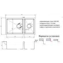 Модель мойки Zorg R 780-2-440 представлена в серии ZORG LIGHT. Производится из высококачественной легированной нержавеющей стали с содержанием хрома 18%, никеля 10% и обладает всем достоинствами этого материала. Мойка абсолютно гигиенична и безопасна для продуктов. Характерными особенностями серии моек Zorg R является плоский кант (2 мм) и радиусы скруглений чаши (R10 мм), а также возможность устанавливать мойку тремя способами установки (врезной монтаж, в один уровень и подстольный монтаж). Матовая поверхность кухонной мойки ZORG ZL R 780-2-440 достигается благодаря применению брашинга (шлифование специальными щётками). Мойка имеет непористую структуру, не подвержена коррозии.