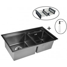 Мойка для кухни Wisent WS7843B-S с дозатором 405B, с коландером 302644B и сифоном GER011 78х43 графит