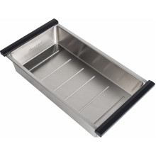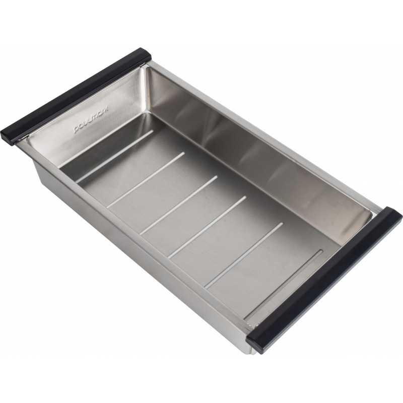 Коландер Paulmark Advance A375-BS изготовлен из высококачественной нержавеющей стали толщиной 1,2 мм. Бортики коландера изготовлены из пластика для легкого перемещения аксессуара и защиты поверхности мойки. Коландер многофункционален и может быть использован для промывки и сушки овощей и фруктов или для разморозки продуктов. Аксессуар разработан специально таким образом, чтобы его можно было удобно разместить на стенках мойки. Коландер не нужно придерживать, он фиксируется в мойке и никуда не сдвигается.