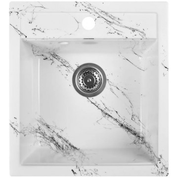 Раковина изготовлена из композитного материала “Искусственный гранит”. Состав материала: 80% гранитно-мраморная крошка, 20% полимерные связующие. Данная смесь природных материалов позволяет достичь максимальной прочности моек, их износостойкости и долговечности.