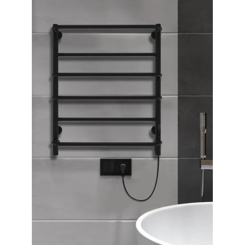 Электрический полотенцесушитель Indigo Europe Lux LELLE60-50BRRt подключается к электрической сети через кабель с вилкой / подключение к электрической сети скрыто в стене.