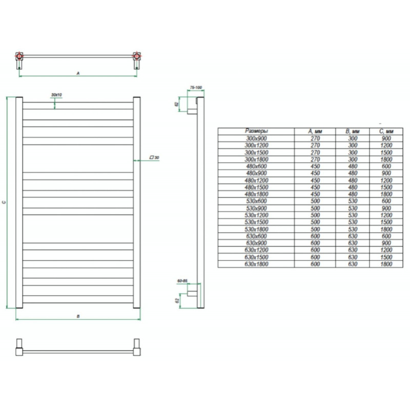 | Форма полотенцесушителя: | Лесенка |