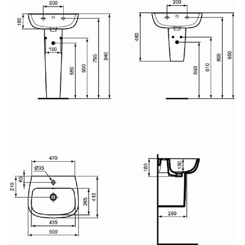 | Монтаж раковины / мойки: | Универсальная (на пьедестале или подвесная) |