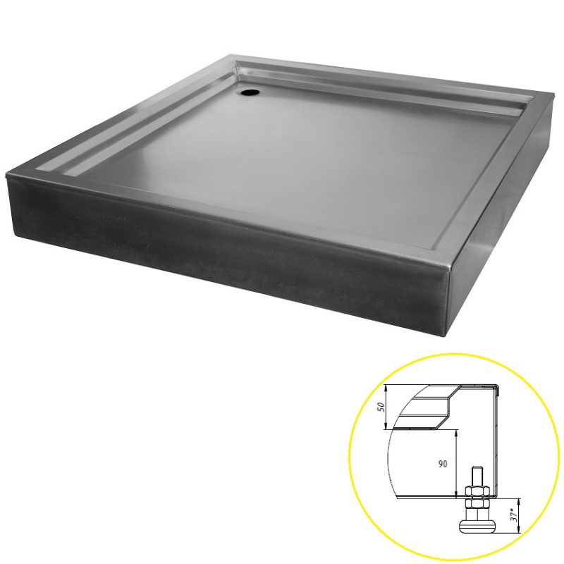 Поддон для душевой кабинки, накладной. Изготовлен из нержавеющей стали AISI 304, толщина стали 1,5мм. Размер поддона см.: 90х90х5