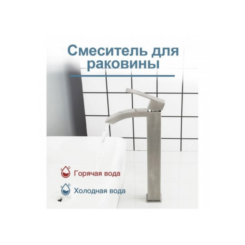 Однорычажный смеситель для раковины с высоким изливом Frap F10803-2, цвет: сатин. Сочетает в себе удобную конструкцию, простоту в установке, универсальный современный дизайн и высокое качество за доступную цену. Превосходно дополнит интерьер любой ванной комнаты.
