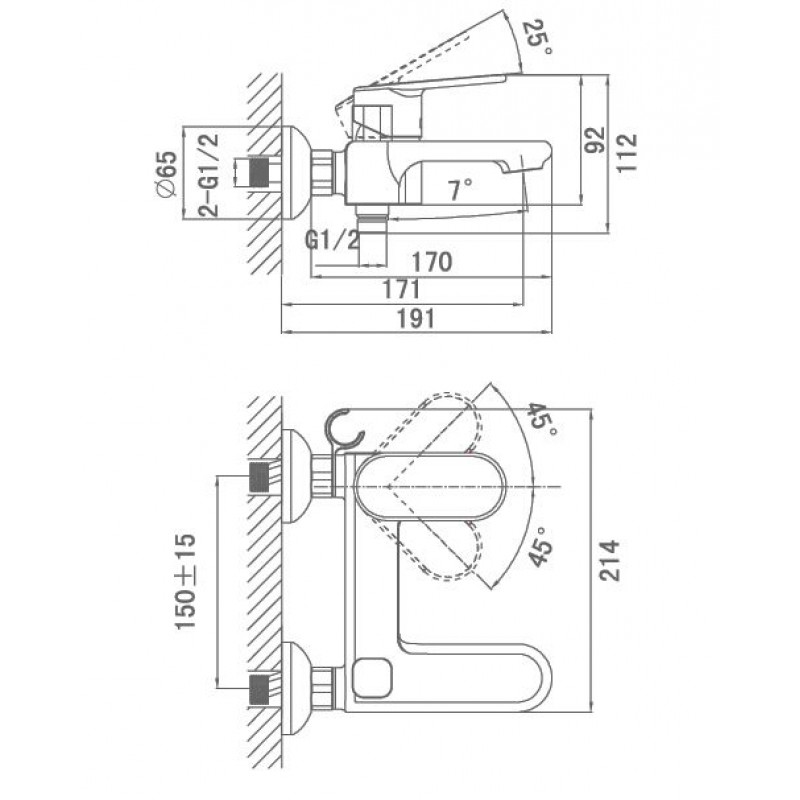 Однорычажный смеситель для ванны с коротким изливом Однорычажный смеситель для ванны с коротким изливом 38,5 мм керамический картридж эксцентрик душевой шланг хромированная поверность