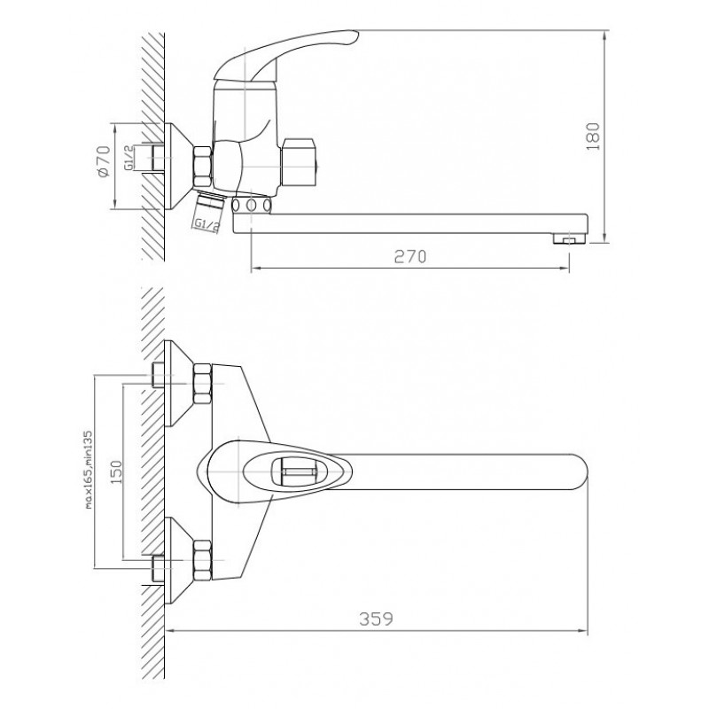 Orange Gabi M81-211cr однозахватный смеситель для ванны и душа с длинным поворотным изливом 350 мм, керамический дивертор.