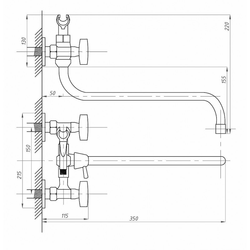 Смеситель для ванной комнаты двухвентильный ПСМ ПрофСан 150-K/80 имеет состоящий из трех частей латунный сборно-разборный корпус. Для регулирования напора и температуры воды используются керамические или манжетные кран-буксы. Переключение ванна-душ осуществляется при помощи стандартного штокового механизма с резиновыми манжетами.
