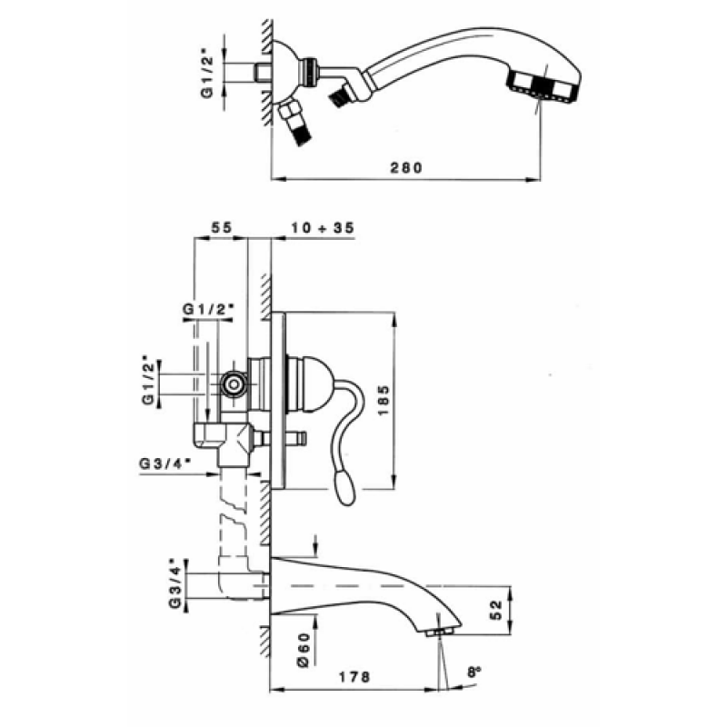Назначение: для ванны с шлангом, лейкой и креплением лейки Исполнение: хром Тип: встраиваемые, из компонентов