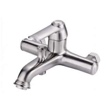 Смеситель для ванны с коротким изливом без аксессуаров. Дивертор пневматический на пружине с принудительной фиксацией (не зависит от давления воды). Корпус – латунь кат. А. Эксцентрики и отражатели в комплекте. Керамический картридж 35 мм.