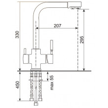 Ulgran Quartz UQ-016 - высокоэргономичный кухонный смеситель с дополнительным краном для подключения фильтрованной воды, оснащенный кран-буксой с керамическими пластинами. Реализован тройной подвод воды через один излив: холодная, горячая и фильтрованная. Переход с одного подвода на другой производится поворотом рычага. Набор для соединения с фильтром входит в комплект . Система фильтрации приобретается дополнительно и монтируется под мойку, специальный индикатор сообщает о необходимости замены картриджа. Материал корпуса выполнен из высококачественной латуни, а окрашивание под искусственный камень в цвет мойки Ulgran Quart выполняется на собственном производстве, что позволяет идеально попасть в фирменный цвет Ulgran Quart.