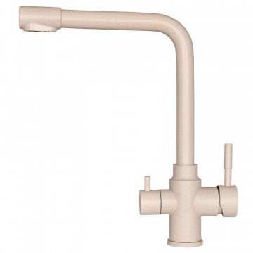 Смеситель для кухни Wisent W4355-3-20 снабжен поворотным изливом и двумя выходами: один отвечает за подачу водопроводной воды, а второй – за подачу очищенной воды из фильтра. Функциональное решение избавит от лишних отверстий для дополнительного крана. Форма смесителя оптимально рассчитана для того что бы вам одинаково удобно было мыть как блюдце, так и кастрюлю.