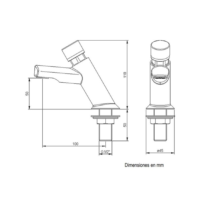 Смеситель с кнопкой таймера для установки в столешницу или раковину предназначен для мест с большой проходимостью. Устойчив к ржавчине и коррозии. Время 1 цикла работы 15 сек при давлении воды 3 бар.