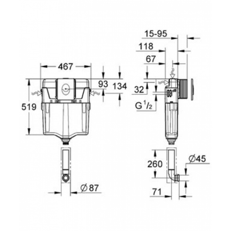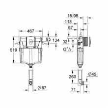 Комплект GD2 с накладной панелью Skate Air регулировка объёма смыва от 6 до 9 л заводская настройка 6 л и 3 л с маленьким ревизионным окошком Пневматический смывной клапан с тремя режимами слива: 2-х объёмный, старт/стоп, или непрерывный Подключение воды: справа, слева, сзади или сверху Арматурная группа I в соответствии с DIN с изоляцией от конденсационной влаги подключение воды DN 15 монтаж ревизионного окна, не требующий инструментов, для вертикального и горизонтального монтажа крепежными накладками впускной и смывной гарнитуры крепление для керамики с накладной панелью Skate Air 2 объема смыва или прерывание смыва старт/стоп для пневматического сливного клапана вертикальный монтаж 156 x 197 мм из ABS GROHE StarLight® хромированная поверхность GROHE EcoJoy® - Технология совершенного потока при уменьшенном расходе воды