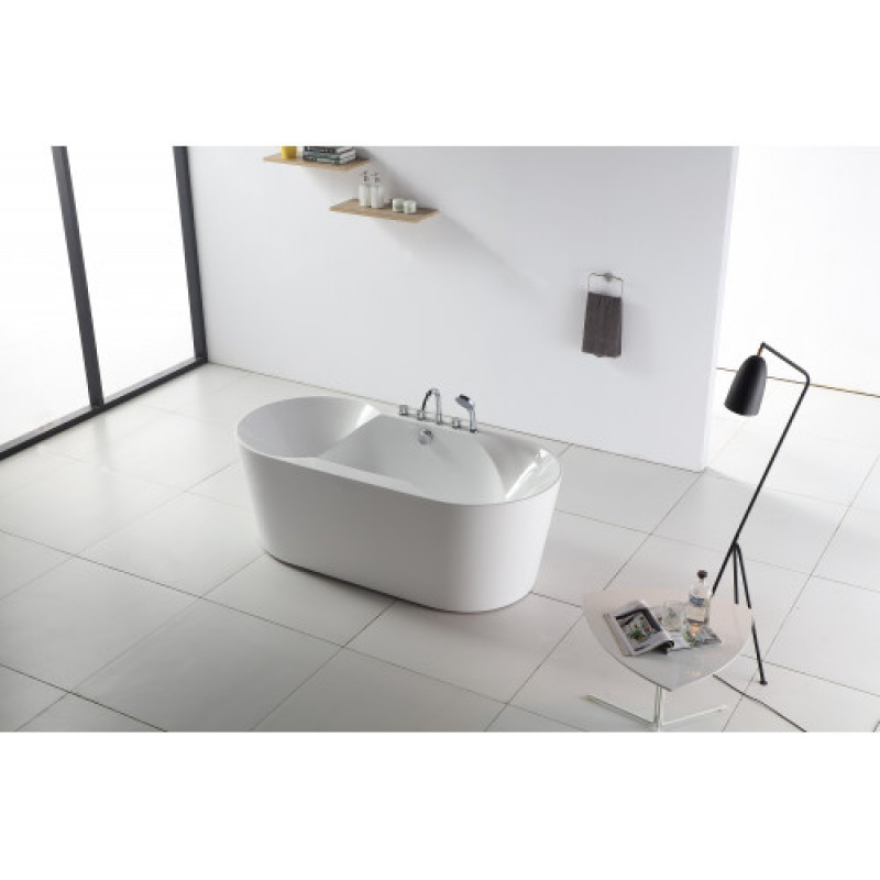 ванна изготовлена из высококачественного двухслойного акрилового листа, усиленного фиберглассом. Ванна проходит тест на производстве и легко выдерживает нагрузку в 500кг. Слив-перелив, расположенный по центру, обеспечивает быстрый слив воды.