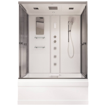 В комплекте зеркало, сенсорный пульт управления, гидромассажные форсунки, смеситель, переключатель режимов, вентиляция, радио.
