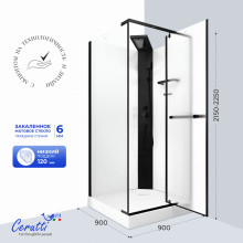 Каждая деталь создана для вашего удобства: регулируемый тропический душ из конструкционного сплава, с регулировкой высоты 5 см + 5 см (регулируется под свой рост до установки кабины). Квадратные элементы и детали кабины, соответствует актуальным дизайнерским решениям, которые удобны в эксплуатации. Ручной душ Metel со шлангом в оплётке из нержавеющей стали надёжны в использовании. Стеклянная полка для хранения банных принадлежностей. Дизайнерская ручка из стали (42 см) не только удобна, но и может служить полотенцедержателем. Сифон анти-запах, не позволяет распространяться неприятному запаху, сохраняет свежесть в ванной комнате. Пластиковая центральная панель лаконична, легкость монтажа обеспечивает бессиликоновая сборка, модель соответствует последним тенденциям.