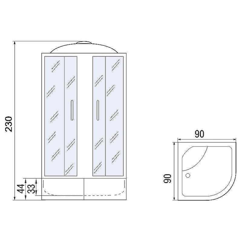 Душевая кабина Мономах XL 90/44 С МЗ 10000012114 90х90 хром/прозрачное с рисунком мозаика