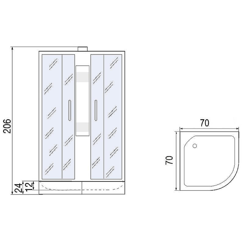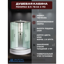 Душевая кабина Мономах Б/К 70/70/24 С МЗ 10000005802 70х70 от известного российского производителя Мономах представляет собой идеальное решение для небольших ванных комнат. Этот современный элемент интерьера обеспечивает комфорт и стиль благодаря полукруглой форме и элегантному хромированному профилю.