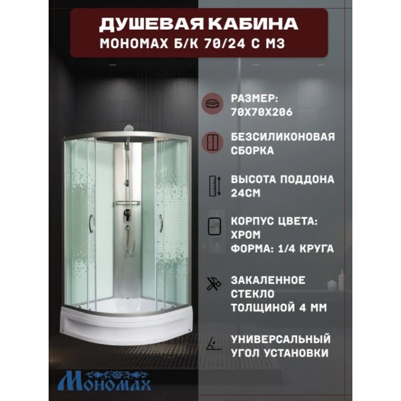 Душевая кабина Мономах Б/К 70/24 С МЗ 10000005802 70х70 хром/прозрачное с рисунком