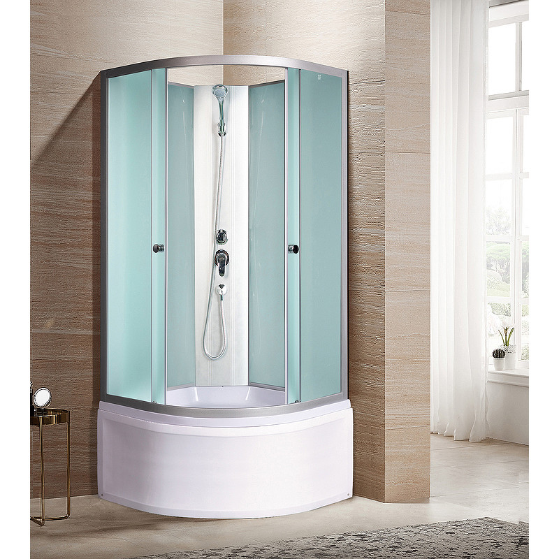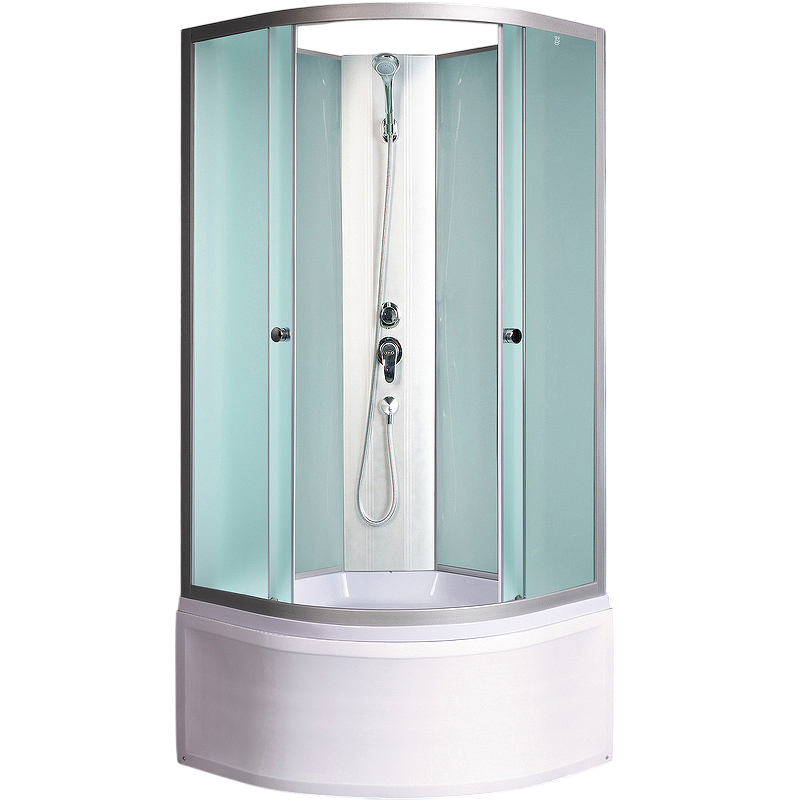 В комплекте поставки: душевая кабина (стекла, профиль, поддон), душевой набор, фурнитура, комплектующие).